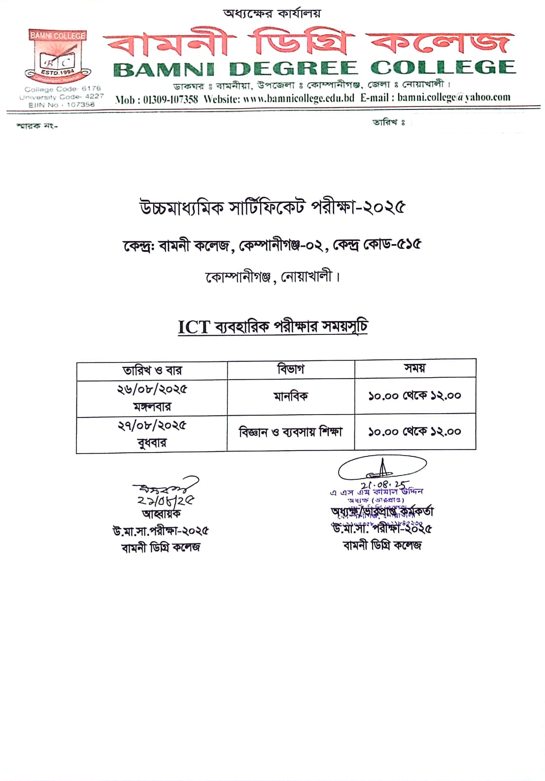 ICT ব্যবহারিক পরীক্ষার সময়সূচি |