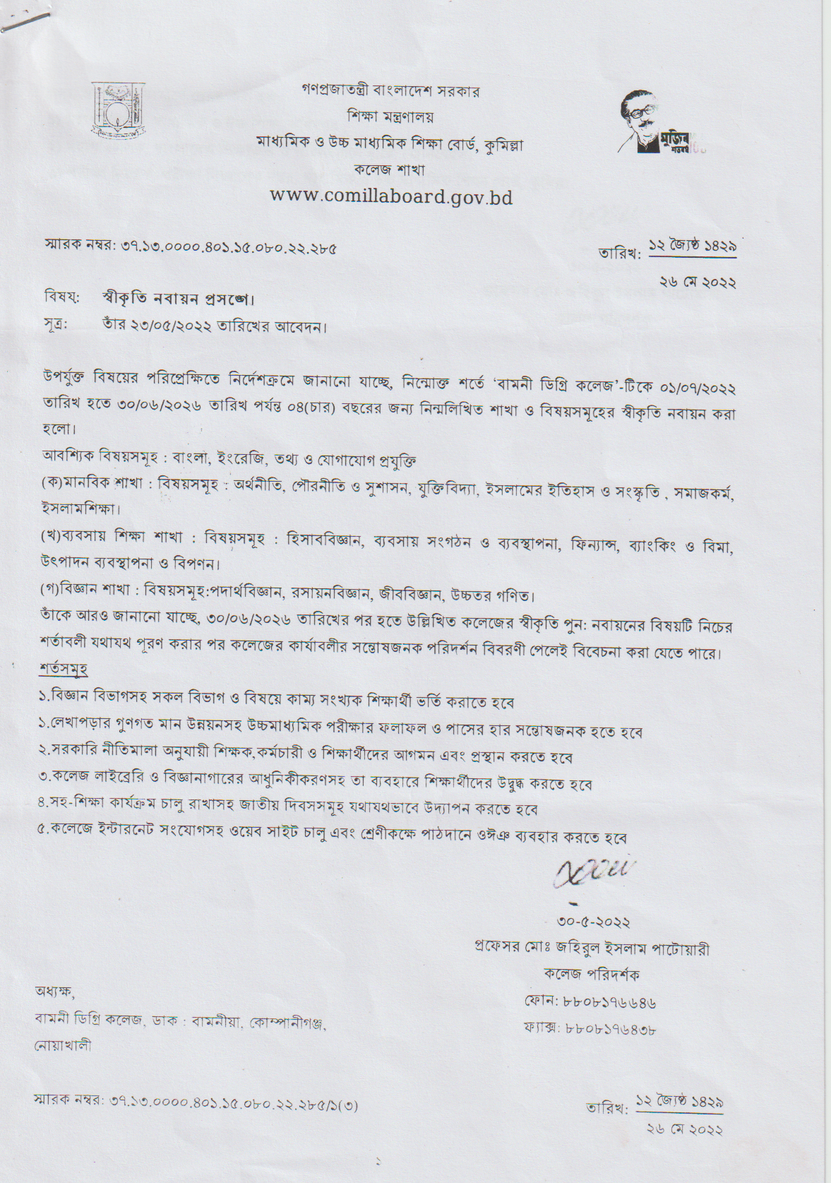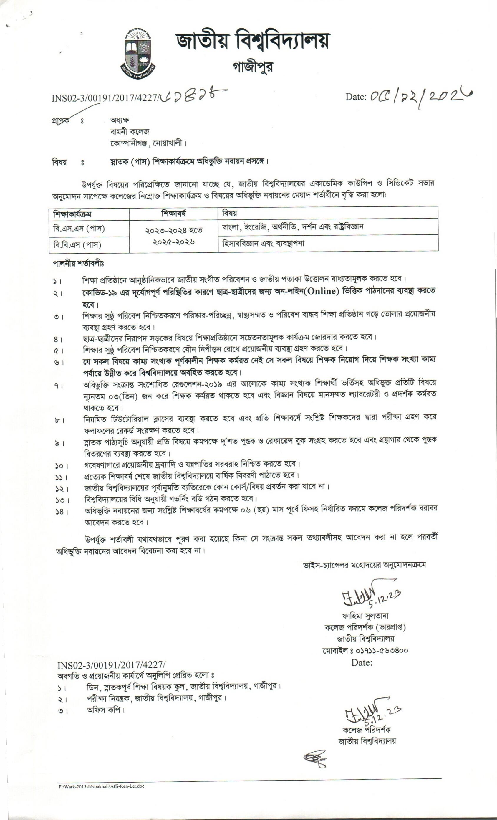 জাতীয় বিশ্ববিদ্যিালয়ের অধিভুক্তি নবায়ন